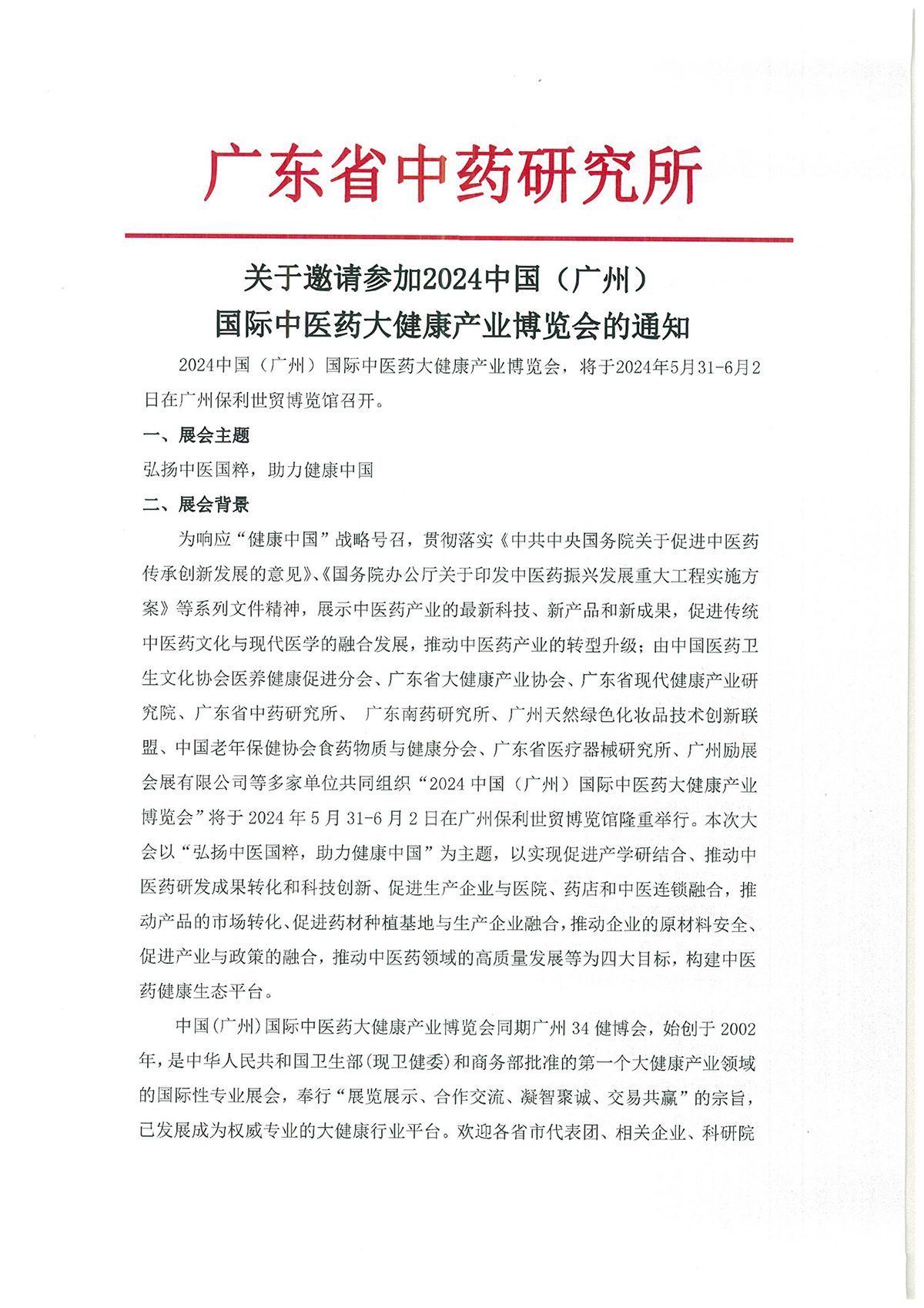 关于邀请参加2024中国(广州)国际中医药大健康产业博览会的通知